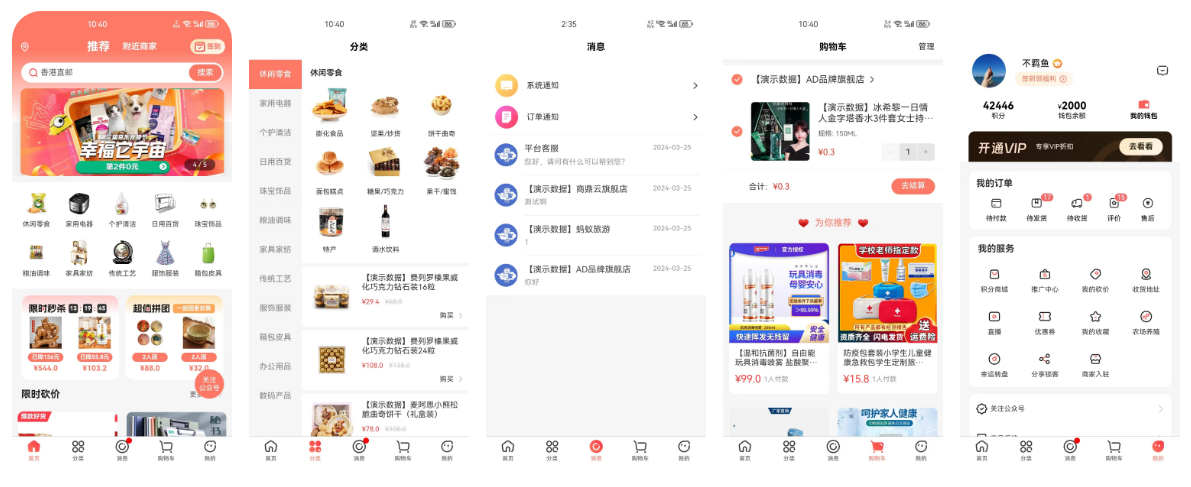 【主要功能】集拼团、砍价、秒杀、会员等营销功能;积分系统,三级分销,商品可设置多规格或组合规格;订单支持全国物流发货,上门自提;多种营销方式,前后端分离,系统源码部署,支持功能定制,源码交付,如需服务请联系商务。